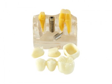 采用優質樹脂制作而成,顯示1.種植體臨床修復的全部步驟及效果;2.傳統烤瓷橋臨床修復步驟及效果;3.種植體與傳統烤瓷橋修復效果的比較。