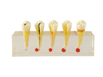 直觀的展示了根管治療的五個步驟.每個根管治療步驟都是在第二前磨牙上生動地展示出來,使學生和患者很容易的理解這些復雜的治療過程。每個牙齒都用不同的顏色表示正確的治療順序.
